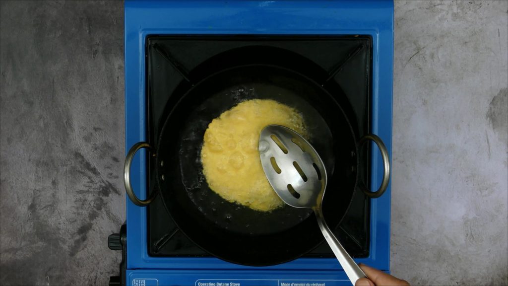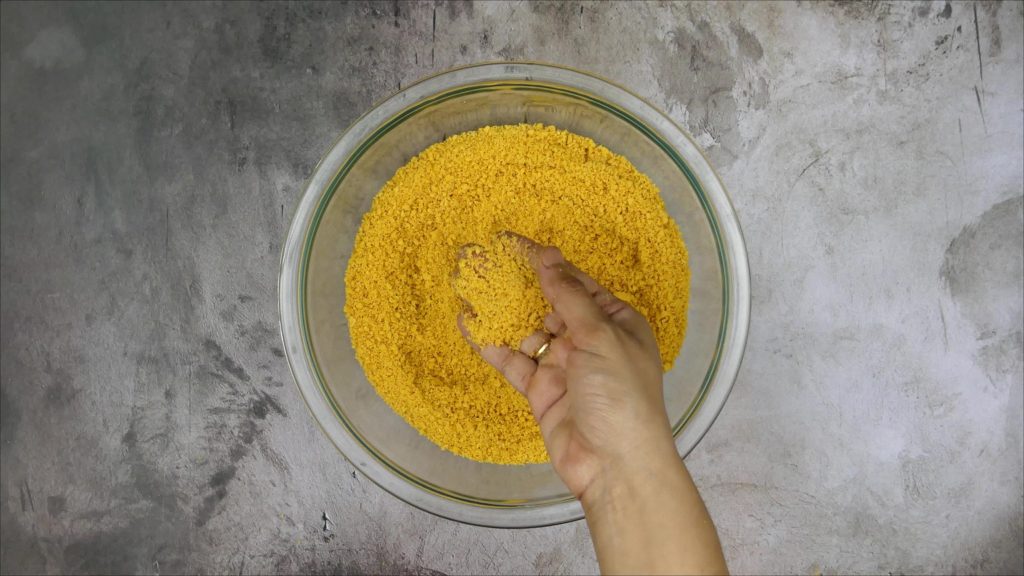 In this preparation, we first make papdi, similar to puri, but with besan (gram flour) instead of wheat flour. The papdi is slightly crispy and full of flavor. After frying, the papdis are ground into coarse crumbs.