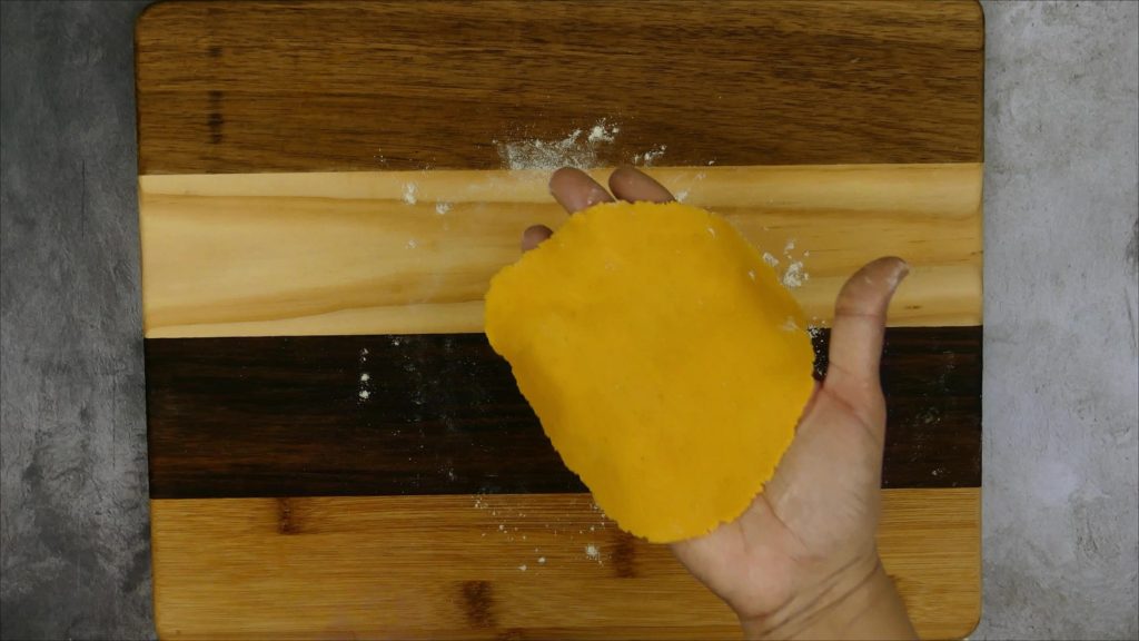 - After resting, take a small portion of dough and make dough ball. Sprinkle some flour on rolling board, roll the dough ball into small puri. It should be medium thick.