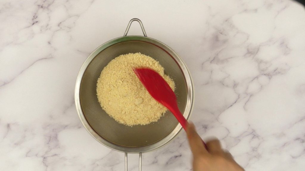 2. Sieve the powder, If there are any big chunks, grind them and sieve again. In this way we get fine powder which helps to make crack free soft dough.