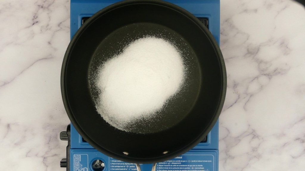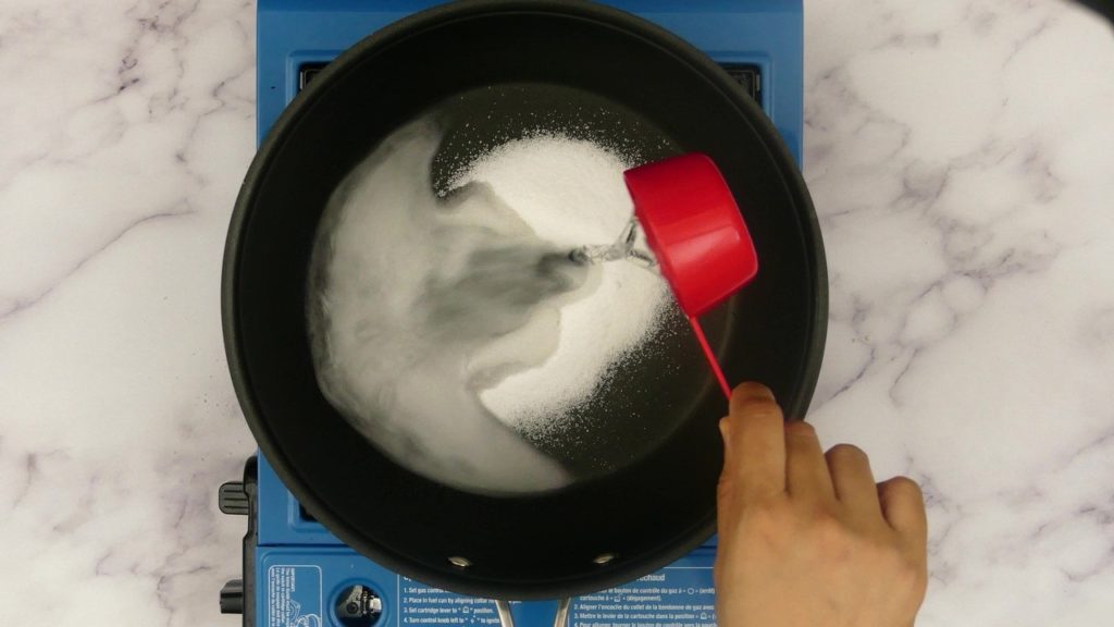 Step 3: To make sugar syrup, add sugar in a pan. add same amount of water. Mix it and keep it boiling until sugar is dissolved and the syrup is of one string consistency.