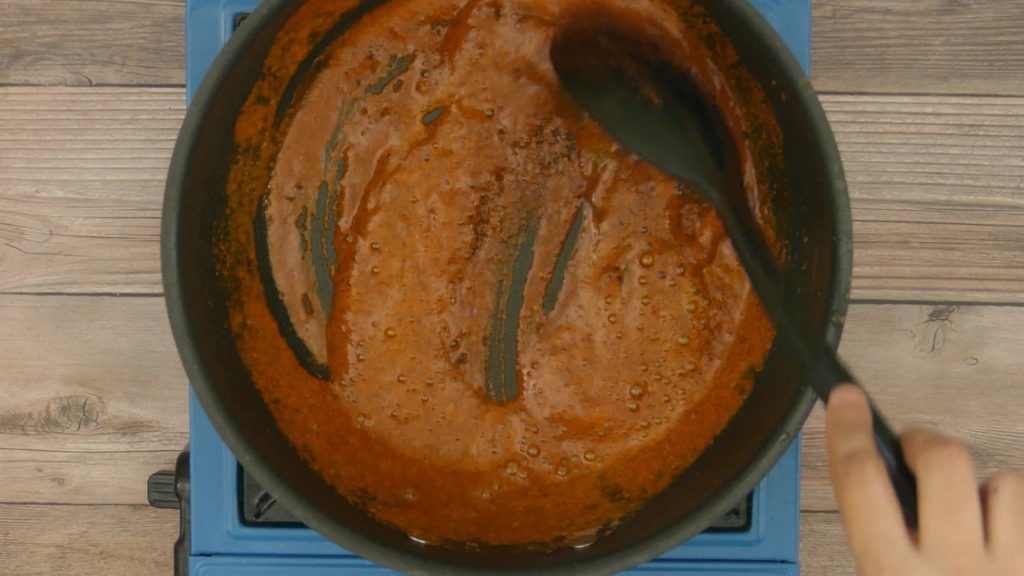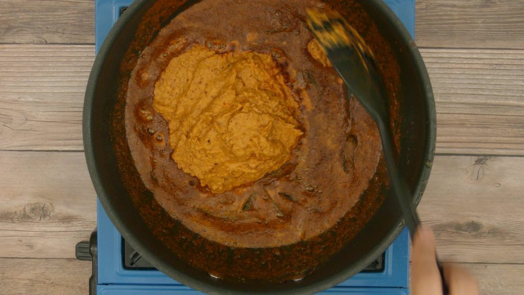 2. Add prepared masala paste, mix everything well. Fry masala until oil gets released.