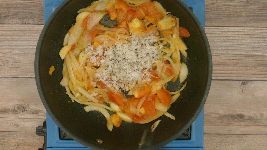 Add grated coconut, and roast it for a minute or two.
