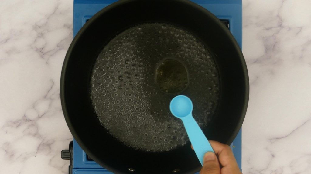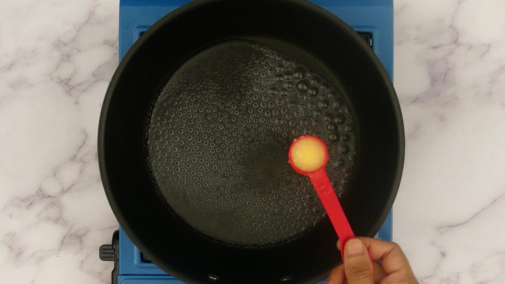 Step 3: In a pan, add 1/2 cup of water, add salt, rosewater and ghee. Let the water boil.